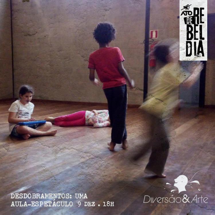 Desdobramentos: uma aula-espetáculo, é resultado do processo das aulas de Dança Contemporânea de Isadora Verly no Diversão & Arte Espaço Cultural. A apresentação conta com crianças e adultos, experienciando jogos corporais, coreografias e contato improvisação. A cada dobra uma nova imagem, a cada imagem uma nova criação, a cada nova criação uma possibilidade de transformação. Isadora é professora de dança contemporânea infantil e adulto. É inspirada pelo contato improvisação, Kinomichi e práticas somáticas. Ministra aulas de dança com música ao vivo. Integra atualmente os projetos RASTRO, uma peça de dança e Mercúrio Líquido em Juiz de Fora.