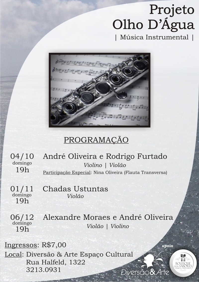ÚLTIMA EDIÇÃO DO PROJETO OLHO D’ÁGUA! Concluindo as apresentações, André Oliveira e Alexandre Moraes se encontram no palco do Teatro do Espaço. Imperdível!!