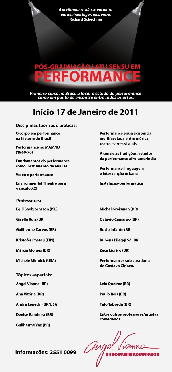 Pós Graduação em Performance na Faculdade de Dança Angel Vianna