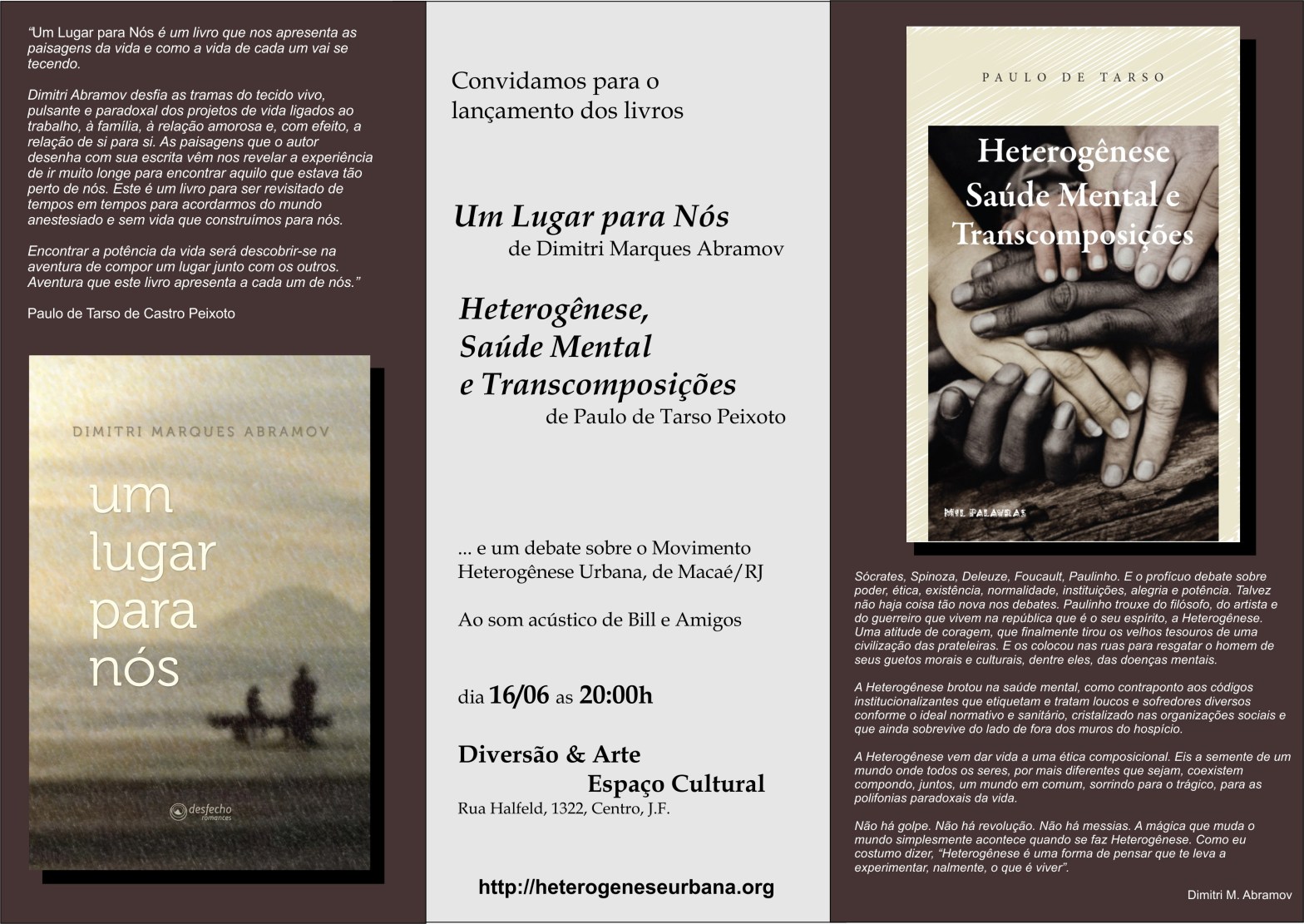 Lançamento dos Livros ‘Um Lugar para Nós’ (D. M. Abramov) e ‘Heterogênese’ (Paulo de Tarso)